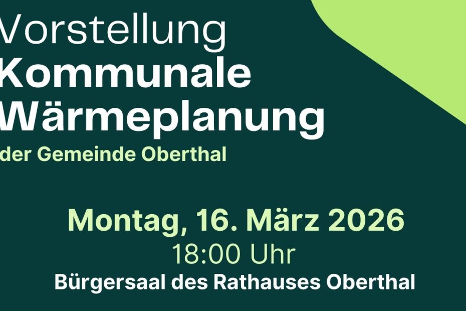 Mit dem am 1. Januar 2024 in Kraft getretenen „Gesetz für die Wärmeplanung und zur Dekarbonisierung der Wärmenetze“ ist die kommunale Wärmeleitplanung (KWP) eine verpflichtende… Weiterlesen »Vorstellung Kommunale Wärmeplanung am 16.03.2026