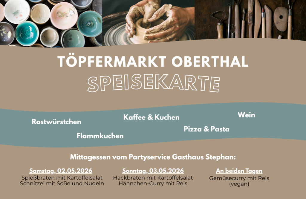 Der Oberthaler Töpfer- und Keramikmarkt findet dieses Jahr am  02. und 03. Mai 2026 statt.